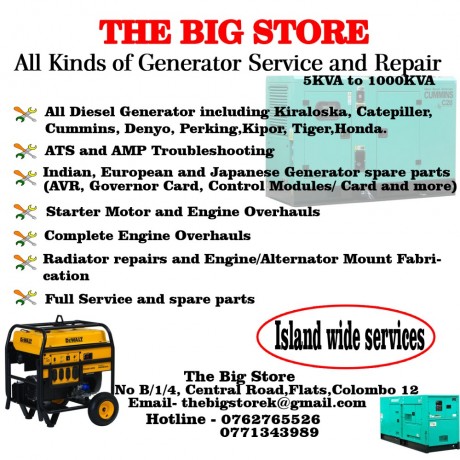 All kind of Generator Repair & Service to 5 kva 1000 kva